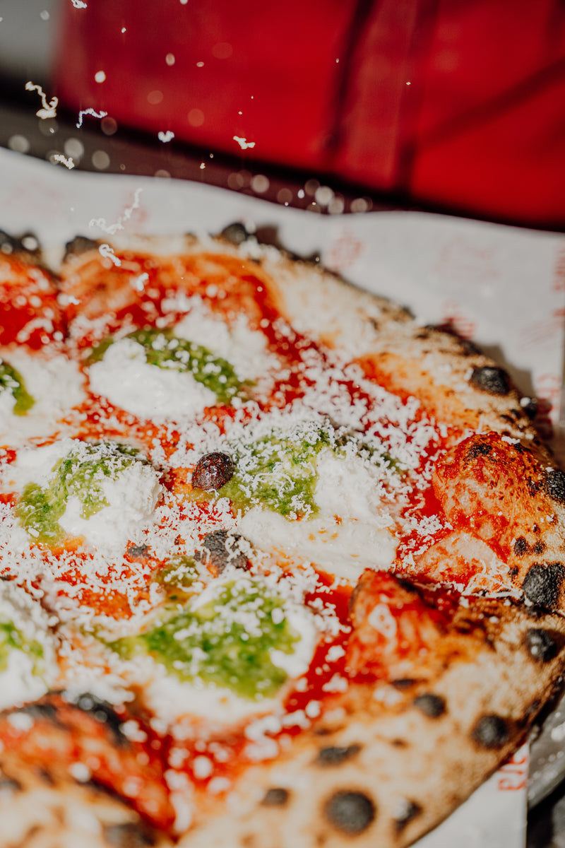 €12SPECK, PEPPERONI, CHORIZO, THREE-CHEESE BLEND, MO’S PESTO & PARMESAN, PESTO MAYO DIP, CRISPS