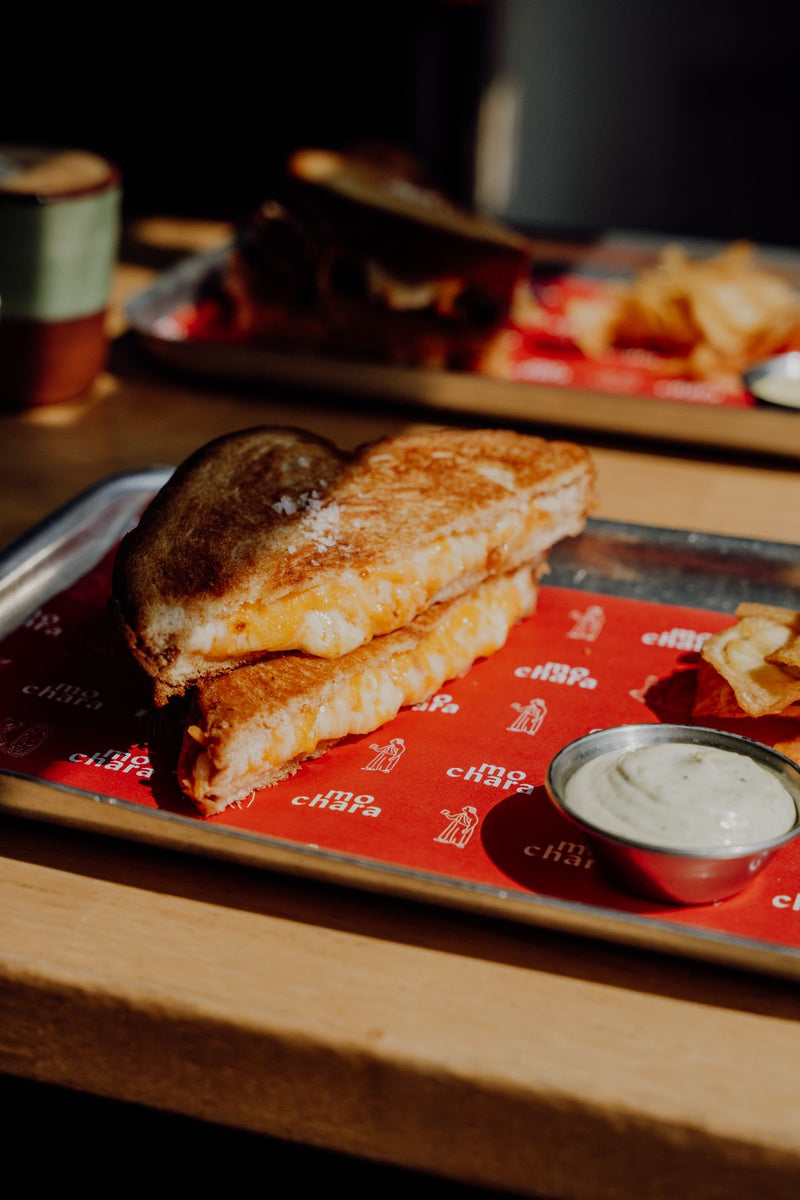 €11MCCORMICK’S ROASTED HAM, THREE-CHEESE BLEND, MO’S MUSTARD MAYO, MUSTARD MAYO DIP, CRISPS