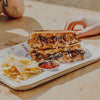 €12BBQ PULLED PORK, CARAMELISED ONION, THREE-CHEESE BLEND, CHIPOTLE SLAW, CHIPOTLE MAYO DIP, CRISPS